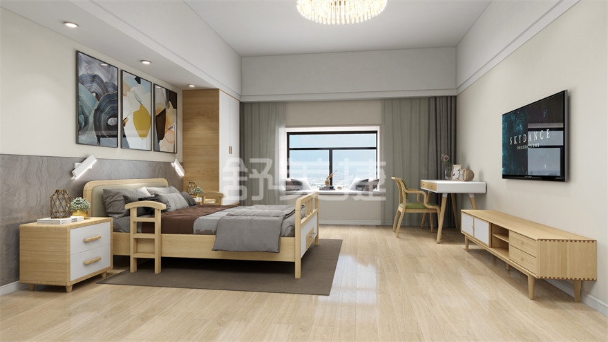 橡膠木實(shí)木貼皮+高密度顆粒板床頭,床頭科技布軟包、床尾,多層板貼皮護(hù)幫,更具家居風(fēng)格。